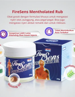 Rp 390.500Firesens Mentholated Rub adalah obat gosok dengan formulasi khusus yang efektif meredakan nyeri otot, punggung pegal, dan rasa sakit akibat rematik. Memberikan sensasi hangat yang nyaman tanpa rasa terbakar, membantu tubuh lebih rileks setelah beraktivitas. Keunggulan Utama: Hangatnya lebih lama dibanding balsem gosok sejenis — efeknya bertahan hingga berjam-jam. Tidak menimbulkan rasa dingin atau terbakar… selengkapnya