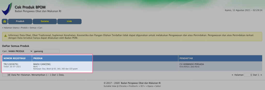 Alhamdulillah Madu GANCENG sudah memiliki izin :