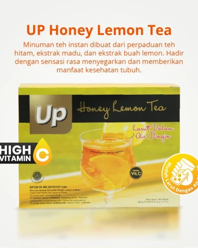 Up Honey Lemon Tea adalah minuman teh instan yang dibuat dari perpaduan teh hitam, ekstrak madu, dan ekstrak buah lemon. Kombinasi bahan alami ini menghasilkan rasa menyegarkan sekaligus memberikan manfaat kesehatan untuk tubuh.